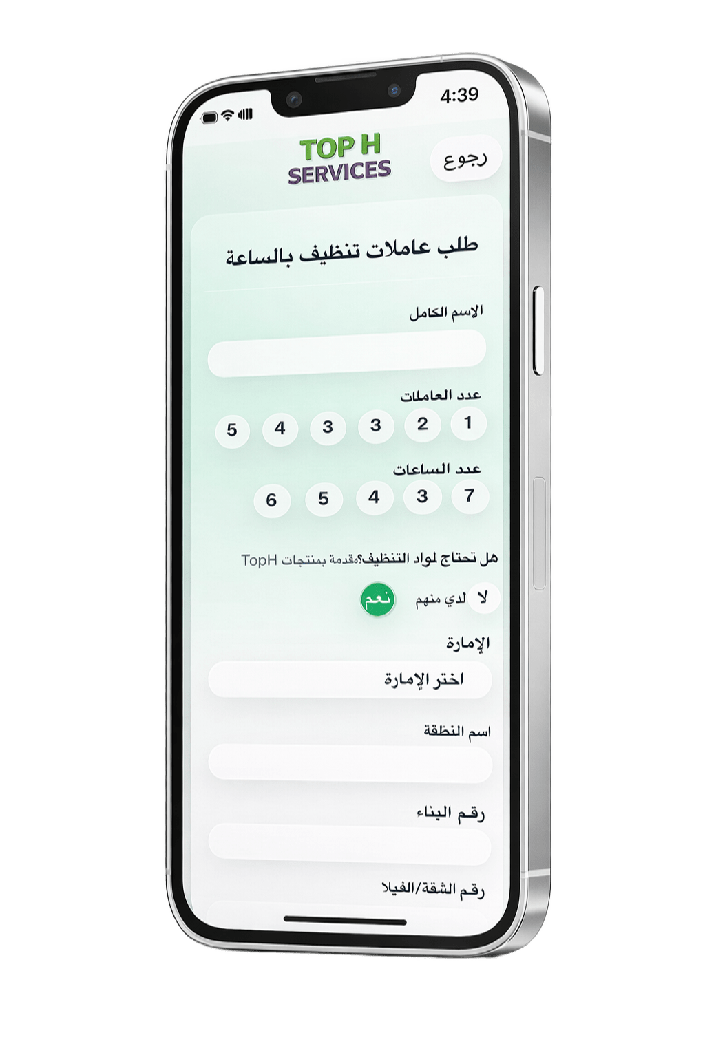 نطاق عمل توب أتش لخدمات التنظيف