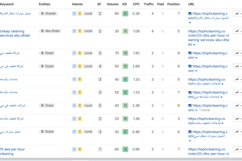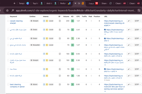 تقرير الكلمات المفتاحية المتصدرة في الصفحات الأولى – موقع TopH Cleaning